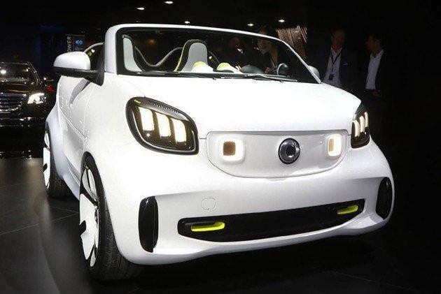 新車基于 smart EQ Fortwo cabrio 打造,但在外觀上融入更多時尚元素。進氣格柵采用與車身同色的封閉式設計,并在兩側(cè)加入了充電口。此外,新車兩側(cè)大燈內(nèi)部也采用了熏黑設計,并采用三條豎狀式的日間行車燈。車身側(cè)面可以看出,雖然同為敞篷版設計,但 smart Forease 相比現(xiàn)款敞篷車的 B 柱更短。同時尺寸更大的封閉式輪轂也能降低行駛時的風阻。